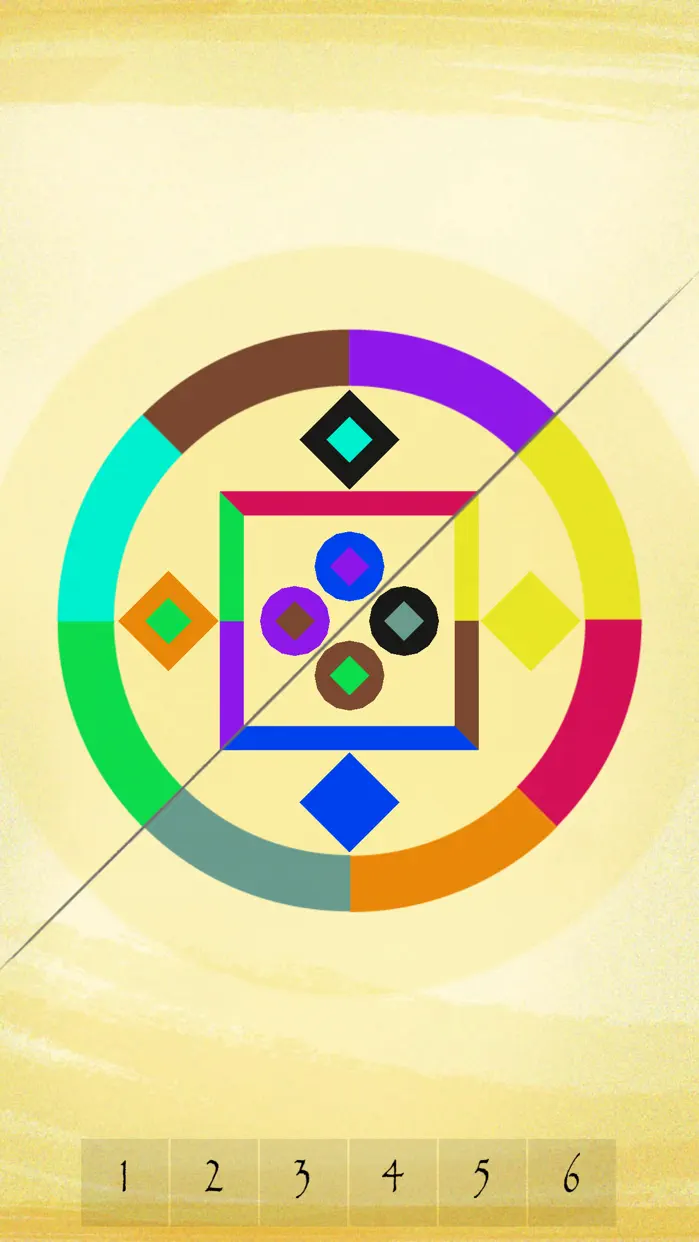 游戏通过一条黑线将屏幕划分为两个区域,首先点击底部的数字按钮,然后点击屏幕中心旋转形状。交换形状颜色,使其在两侧达到平衡。双击屏幕顶部标题栏可暂停游戏。