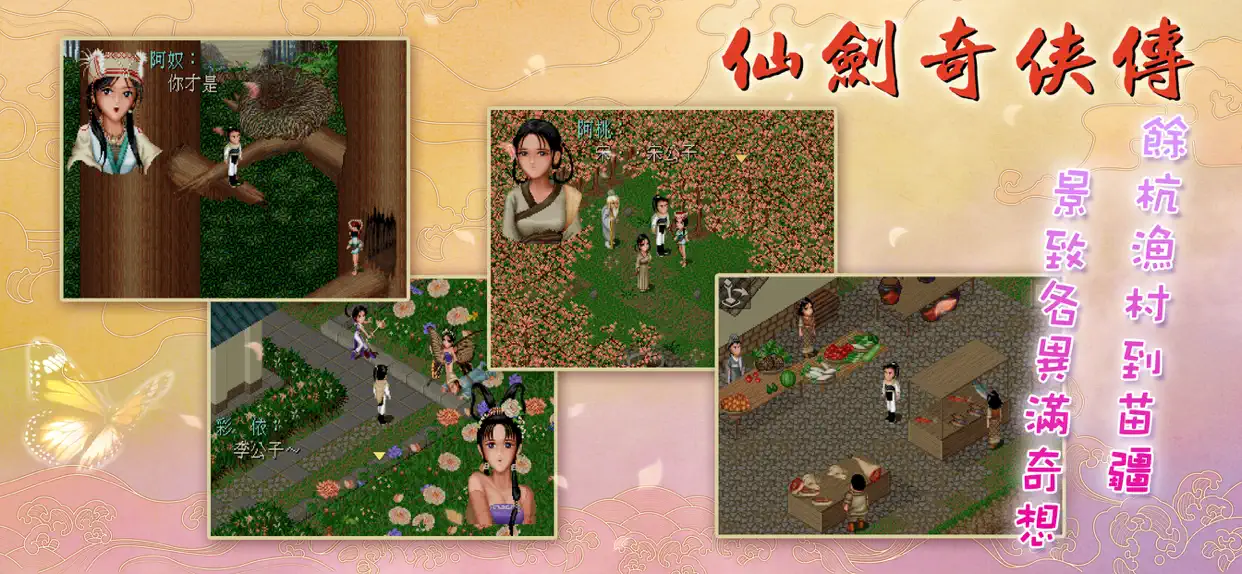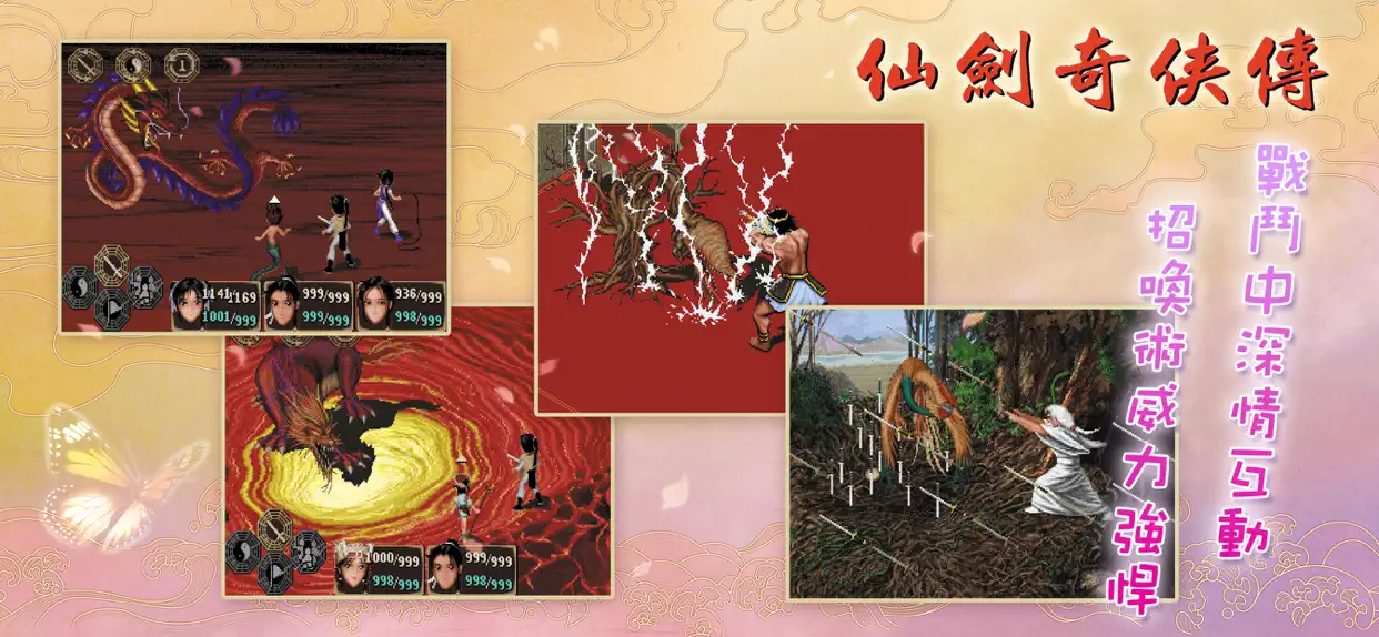 1995 年 7 月 10 日发行的 DOS 版,华人最经典的 RPG 游戏,仙剑承载着游戏玩家太多的回忆及感情,是影响了整整一代玩家的游戏大作。感人的剧情、动情的音乐、还有那优雅的诗词至今仍让老一辈的玩家难以忘怀。游戏的主角李逍遥、赵灵儿、林月如、阿奴,也成了游戏界的明星人物。虽然有人认为《仙剑奇侠传》的巨大成功在后来客观上阻碍了其他国产游戏的创新和发展,但毫无疑问的是,《仙剑奇侠传》是中国游戏史上一座重要的里程碑。