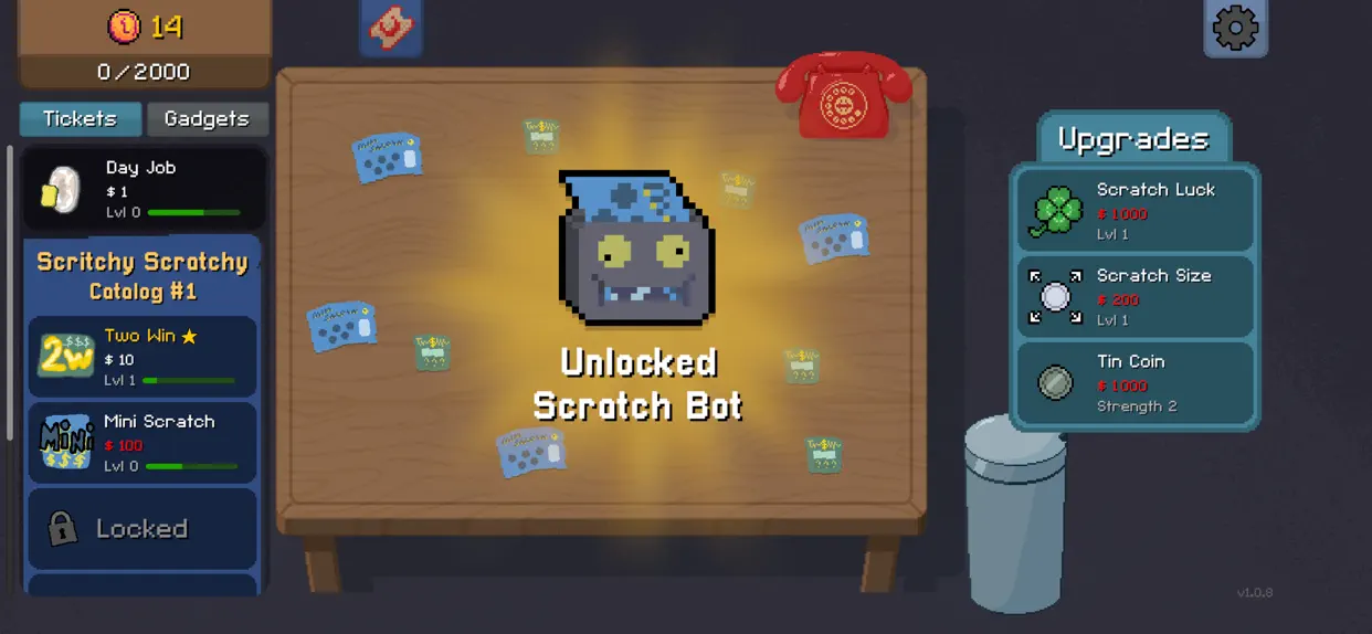 Scritchy Scratchy is a super-satisfying scratch card incremental game where luck is your weapon, and glittering riches are just a scratch away.