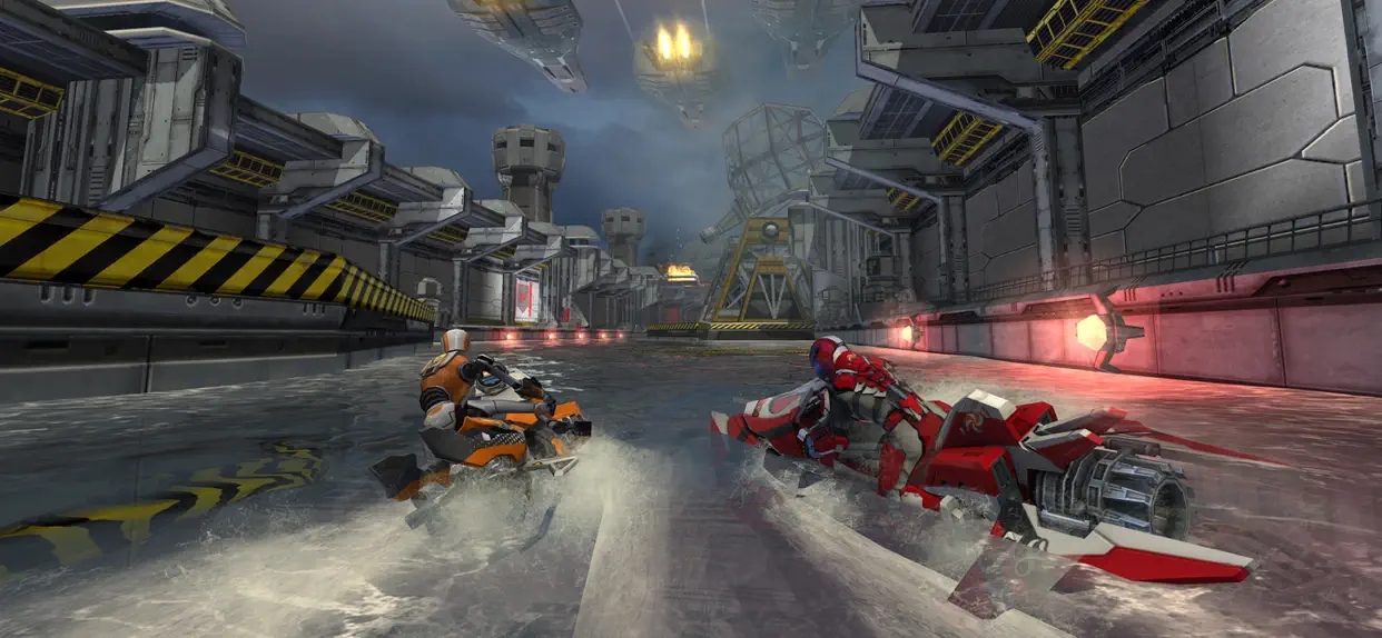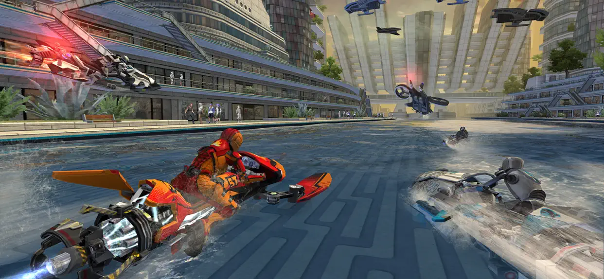 体验非法喷射快艇竞速的未来,装甲骑手跨越巨大瀑布上演亡命特技,穿行公共水道躲避警察追捕,并在翻涌的海浪上全速冲刺。